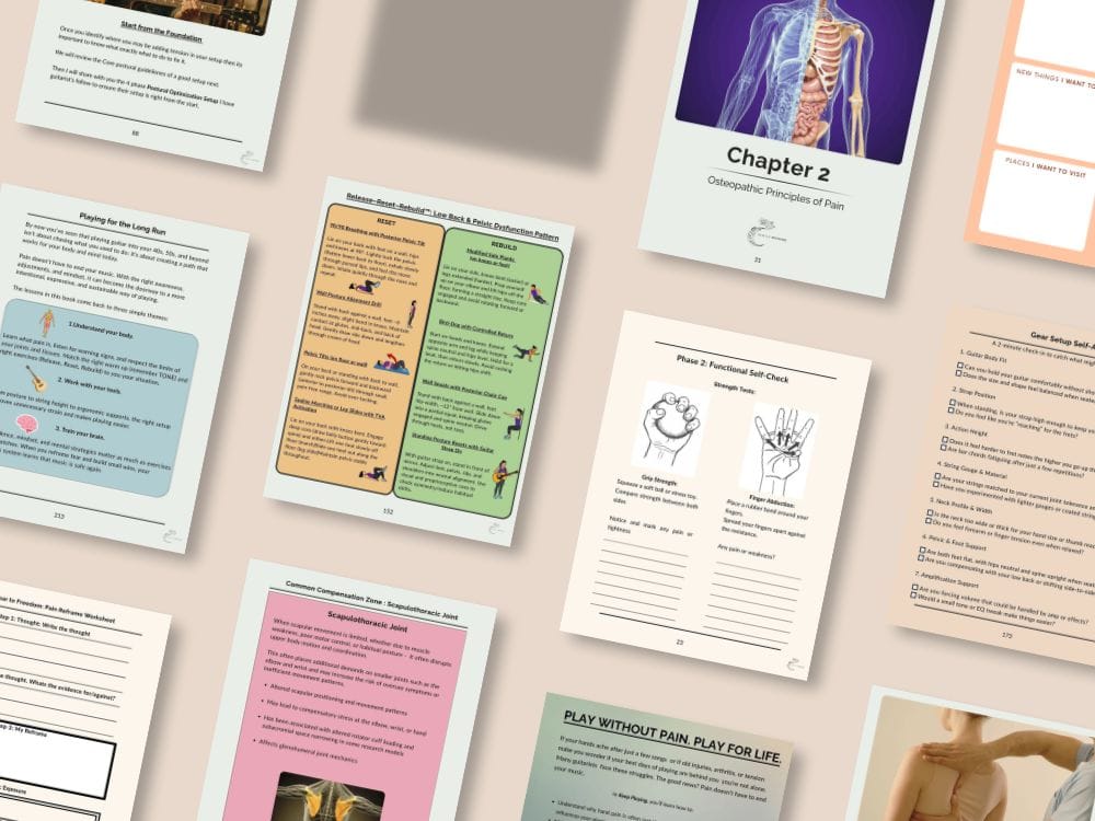 219 pages of anatomical insight, practical movement, and mindset strategies designed for guitarists.